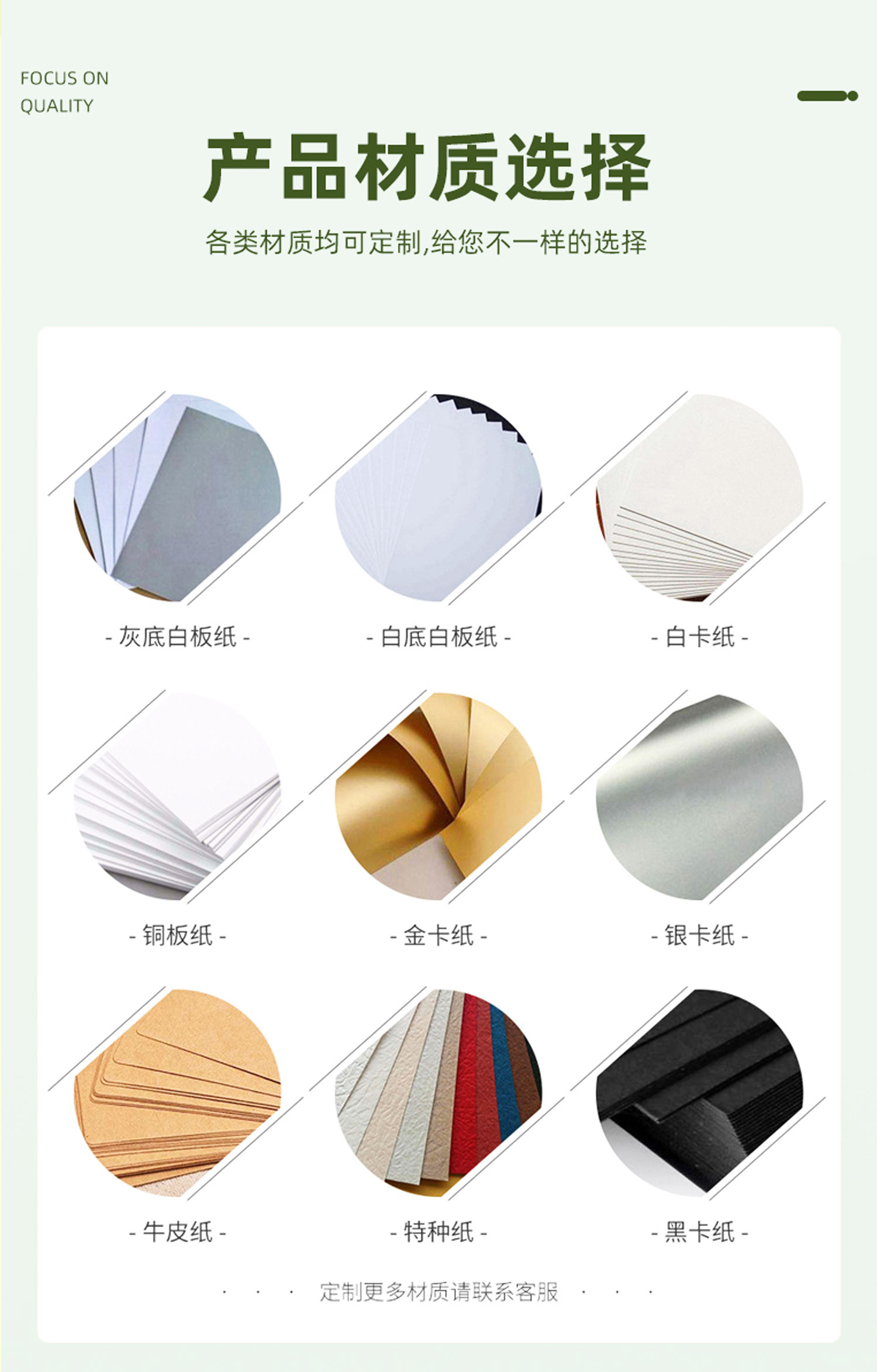 纸质包装材料种类丰富,每种材料都有其独特的特性和适用范围,从普通纸张到高强度纸板,满足不同包装需求。