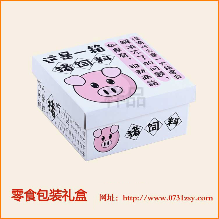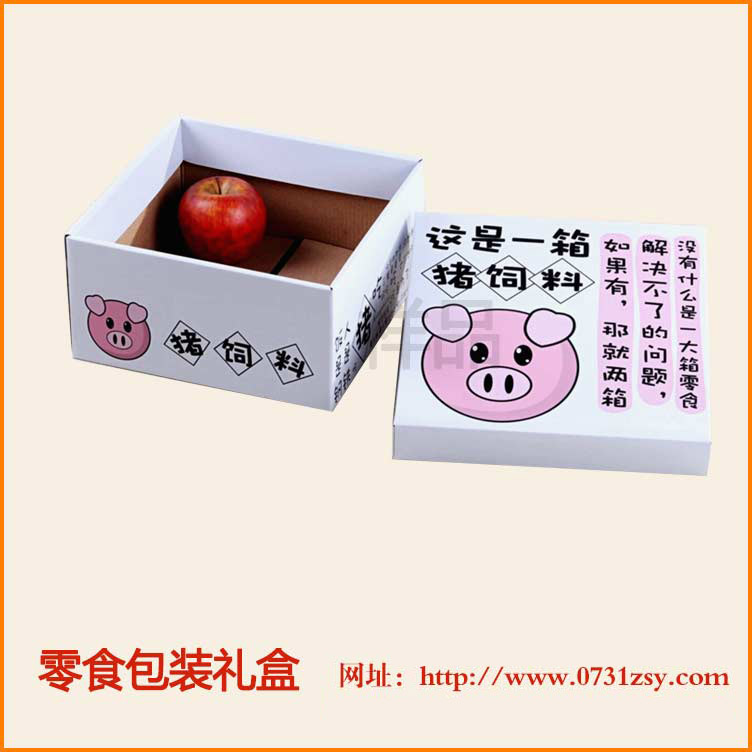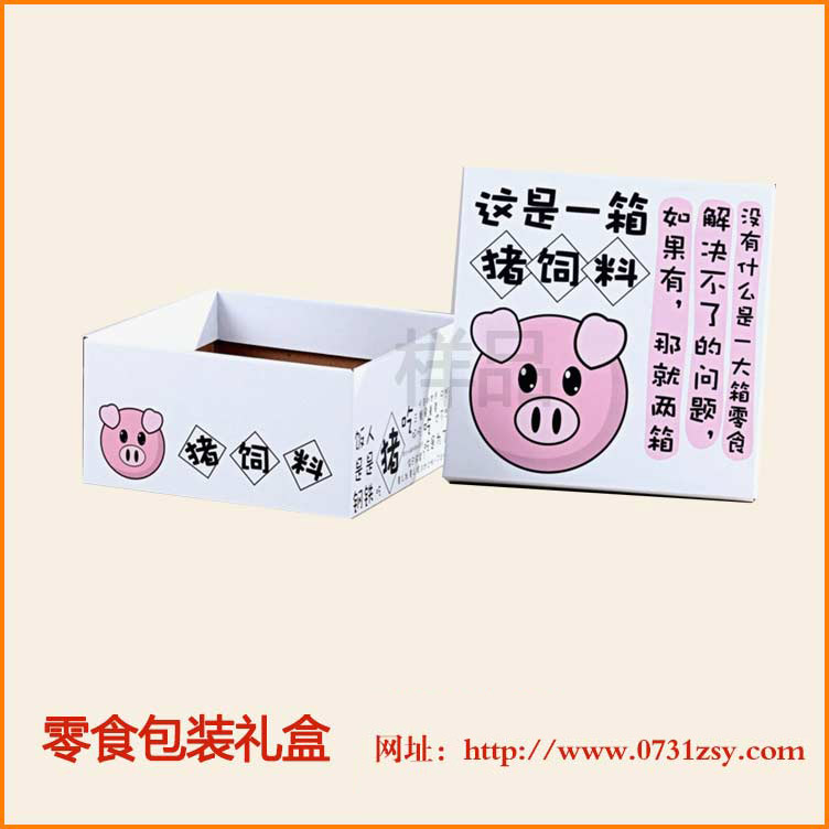 【使用范围】:猪饲料零食包装盒盒型业天地盖盒,广泛适用于食品包装盒,特产包装盒,水果包装盒,农产品包装盒,大米包装盒等,长沙零食包装盒印刷厂家,免费打样,热线:177-6366-7656