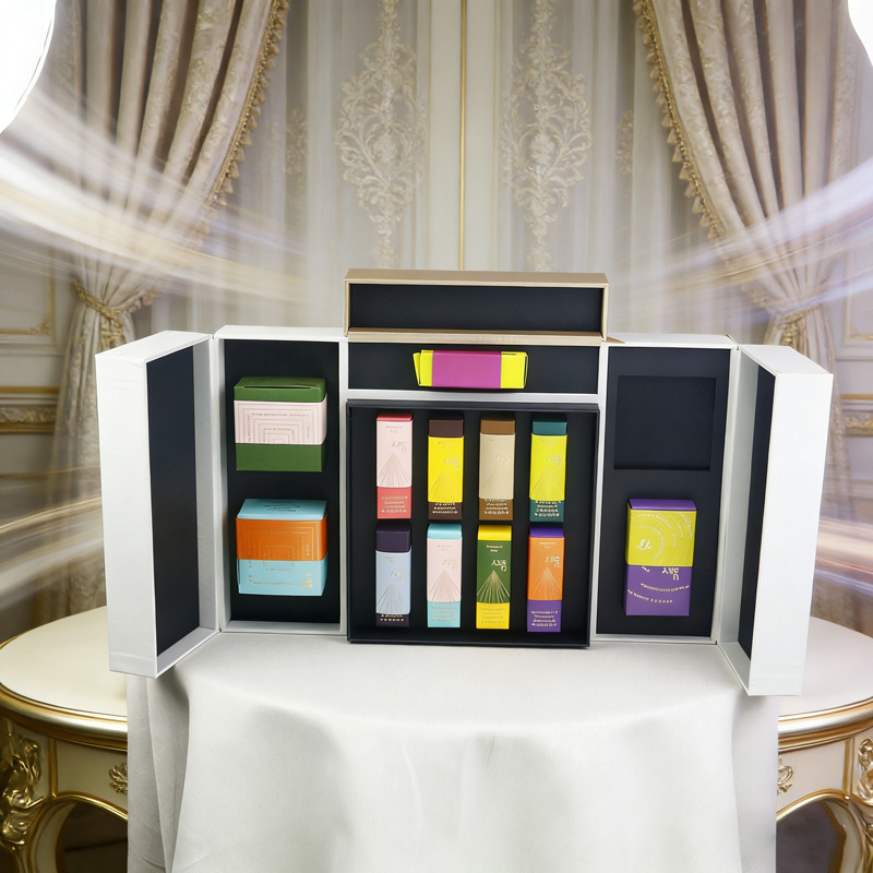 【使用范围】:此款文创产品包装礼盒,采用定制特种纸,表面做烫金工艺,此款包装礼盒广泛应用于:茶叶包装盒,礼品包装、茶叶包装、茶油包装、特产包装、农产品包装等多个领域——湖南十方艺印包装
