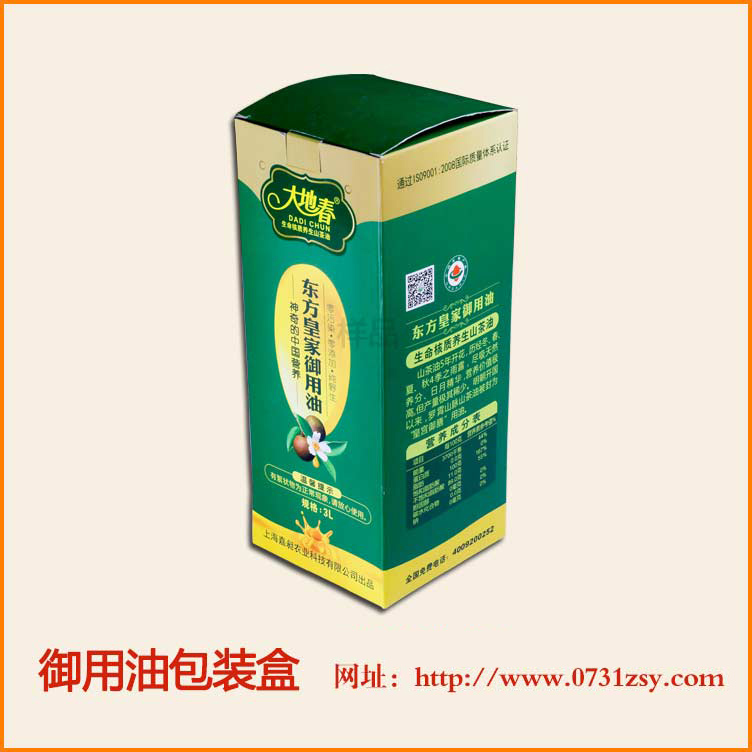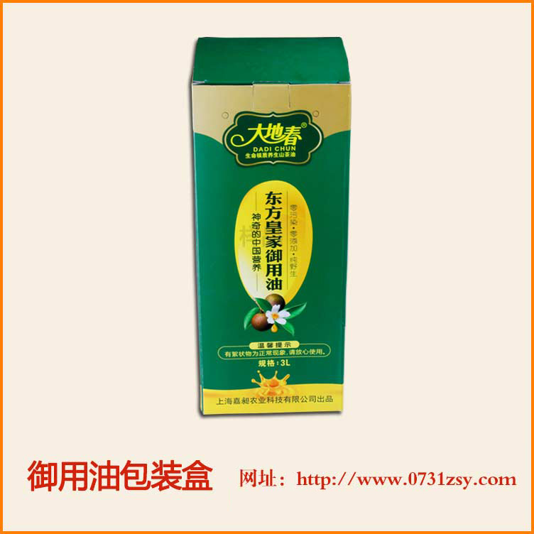 【使用范围】:东方皇家御用油包装盒盒型广泛适用于食品包装盒,茶油包装盒,大米包装盒,礼品包装盒,产品包装盒等,长沙食用油包装厂,免费设计,1~2天定稿,热线:177-6366-7656