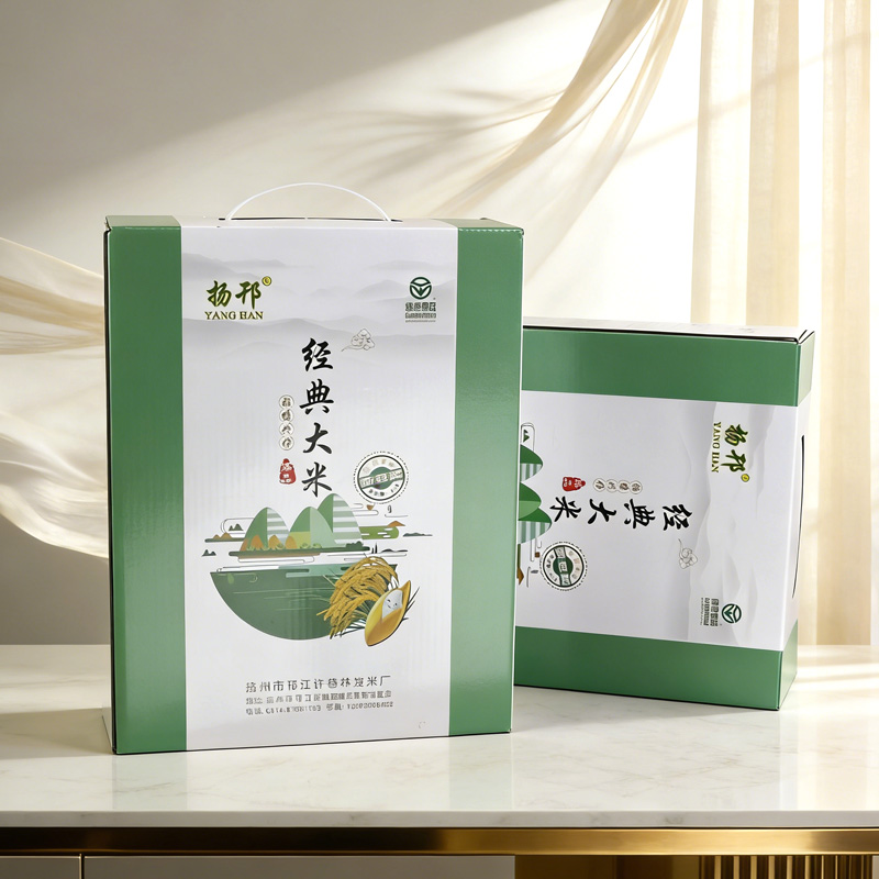 【使用范围】:此款大米包装礼盒,采用白卡纸裱瓦楞纸,此款包装礼盒广泛应用于:茶叶包装盒,礼品包装、茶叶包装、茶油包装、特产包装、农产品包装等多个领域——湖南十方艺印包装