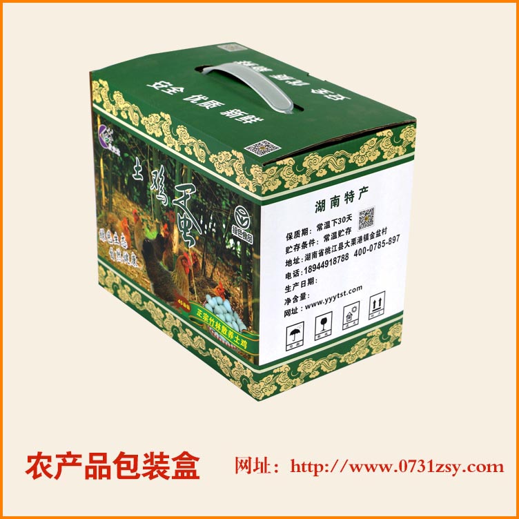 【使用范围】:此款农产品包装盒主要使用于:土鸡包装盒,土鸡蛋包装盒,鹅蛋包装盒等