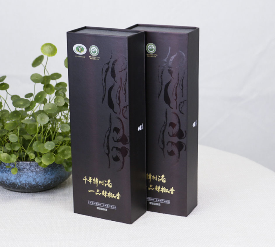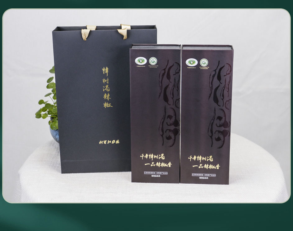 樟树港辣椒包装盒一般以手提瓦楞盒较常见,您见过这样的樟树港精装礼盒吗?两个礼盒配手提袋方便提携更显高档,长沙包装盒厂毅丰包装选用特种纸裱灰板的材质,外盒做UV工艺,让包装盒更出彩!此款辣椒彩盒包装材质也适用于茶叶包装盒,大米包装盒,农产品包装盒,食品包装盒等