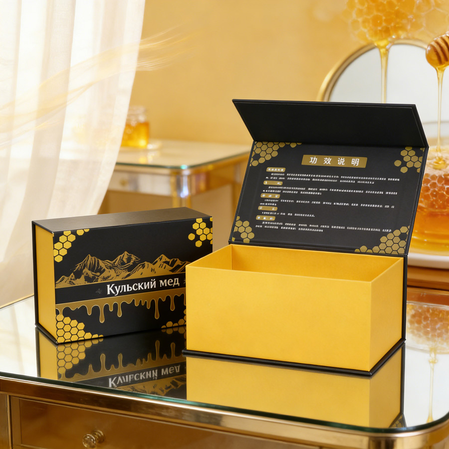 【使用范围】:此款蜂蜜包装礼盒,采用铜版纸印刷,表面做烫金工艺,此款包装礼盒广泛应用于:茶叶包装盒,礼品包装、茶叶包装、茶油包装、特产包装、农产品包装等多个领域——湖南十方艺印包装