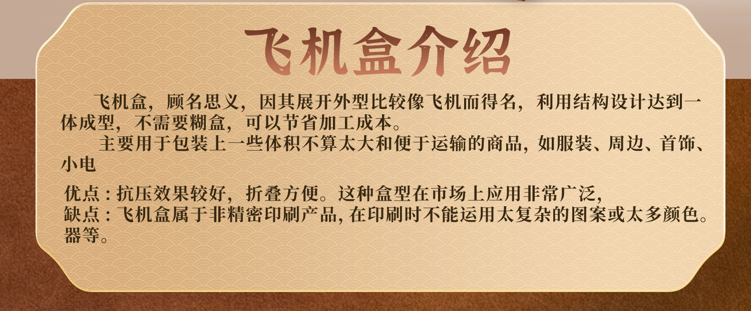 飞机盒型包装|长沙包装厂家|十方艺印包装 【包装规格】:根据您的要求订制 【包装工艺】:可印刷工艺:烫金、UV、压型、击凸、彩印、腹膜等。 【包装材质】:外裱纸:白卡纸、特种纸 【使用范围】:飞机盒包装盒广泛使用与产品包装礼盒,食品包装礼盒,保健品包装礼盒,茶叶包装礼盒等. 【定制说明】 长沙包装厂专业定制(厂家制作)(免费设计)长沙市区免费送货上门其他区域可发物流
