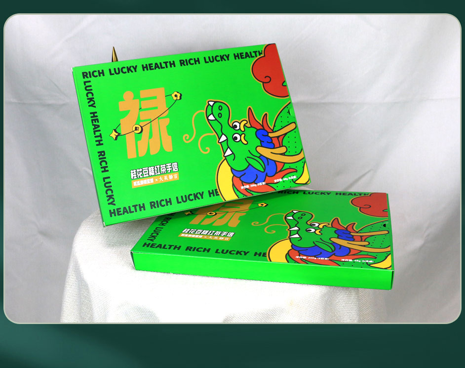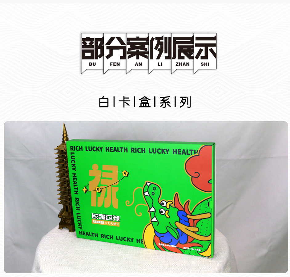 【使用范围】:该款绿豆糕食品包装盒材质为白卡纸,广泛适用于农产品包装盒订制,食品包装盒印刷,特产包装礼盒制作等礼品盒包装印刷。