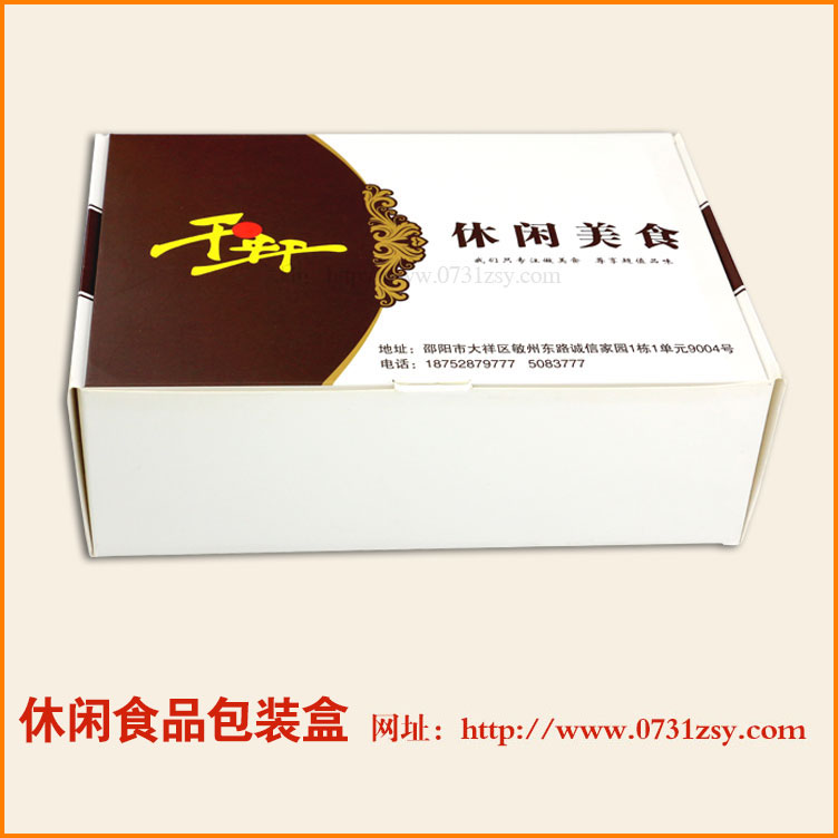 【使用范围】:此款休闲食品包装盒主要使用300g白卡纸印刷,广泛使用于食品包装盒、产品包装盒、特产包装盒等礼品包装卡盒.长沙十方艺印包装印刷厂专业定制,交货快!热线:177-6366-7656
