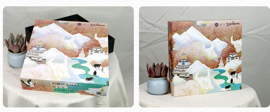 “西藏诺布庄园”隆重推出冰淇淋月饼,与众不同的产品做包装当然选择更专业的长沙包装盒厂毅丰包装,毅丰包装站在客户的角度出发,结合产品定位及包装的实用性,最终确定了天地盖的盒型,内衬则选用稳固性好的珍珠棉,整个月饼包装盒不仅起到了保护产品的作用也精致美观,受到客户的一致夸赞!
