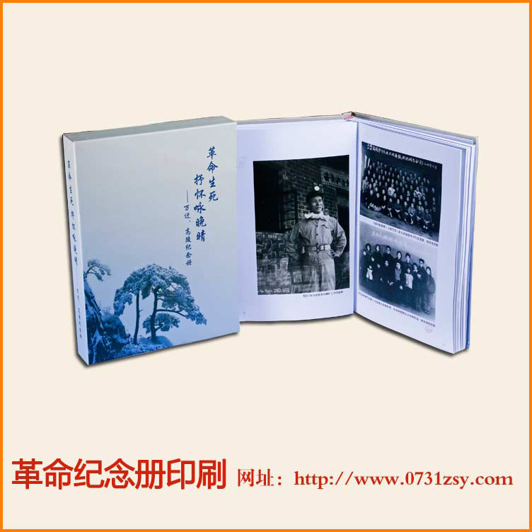 长沙印刷厂家毅丰印刷厂专业为万迁,高陵纪念册设计制作的,此款纪念册是为了纪念“革命忘生死,抒怀咏晚晴”的革命精神,此款纪念册采用高档材质,精装书包装定制的材质,封面:铜版纸裱灰板,内页:铜版纸印刷。长沙革命高陵纪念册印刷毅丰刷厂是一家专注于精装书包装盒印刷,精装书印刷,纪念册族谱印刷等.