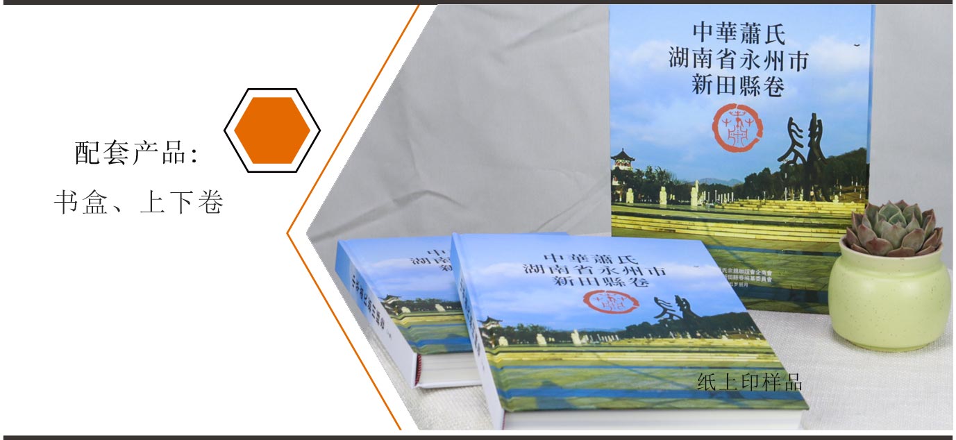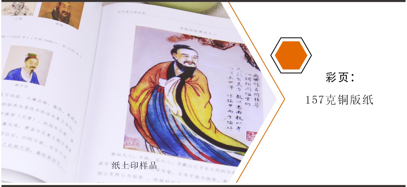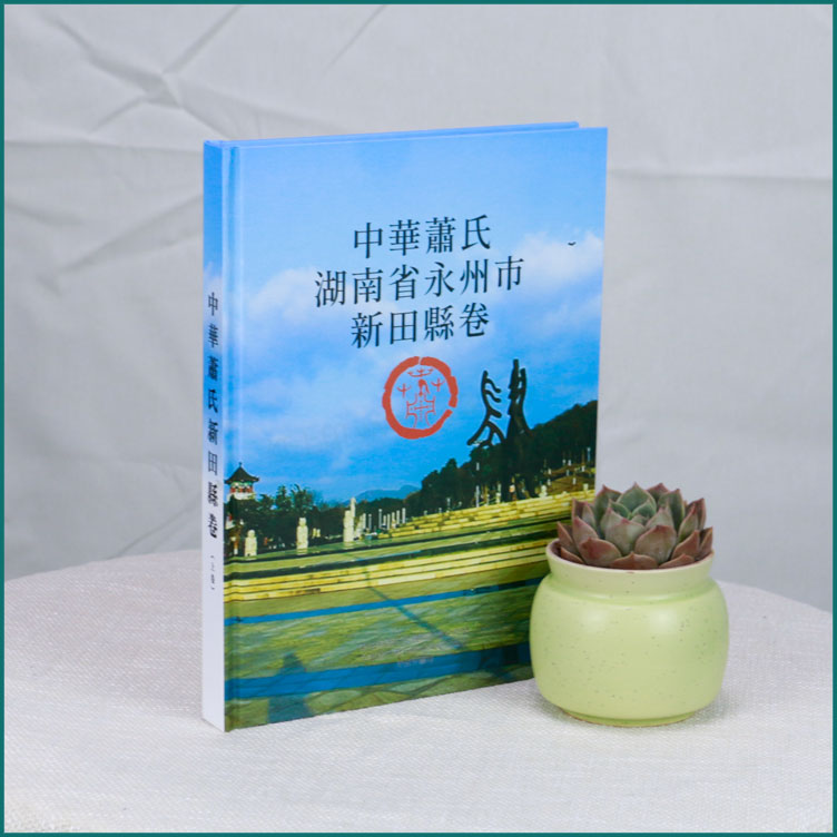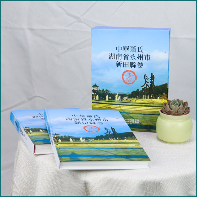 长沙包装印刷厂毅丰专注精装书印刷22年,提供设计,打样,印刷制作,送货一站式服务,中华萧氏永州市新田县族谱经过设计排版打样确认,最终大货生产完成如期交货。族谱印刷制作封面材质为铜板纸裱灰板,彩页157克铜版纸,内页80克东方书纸,广泛适用于各类书籍印刷,画册印刷,宣传册印刷等各类印刷品。
