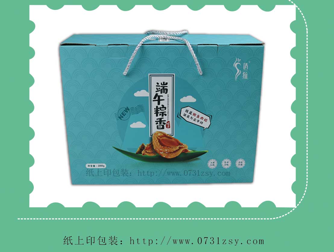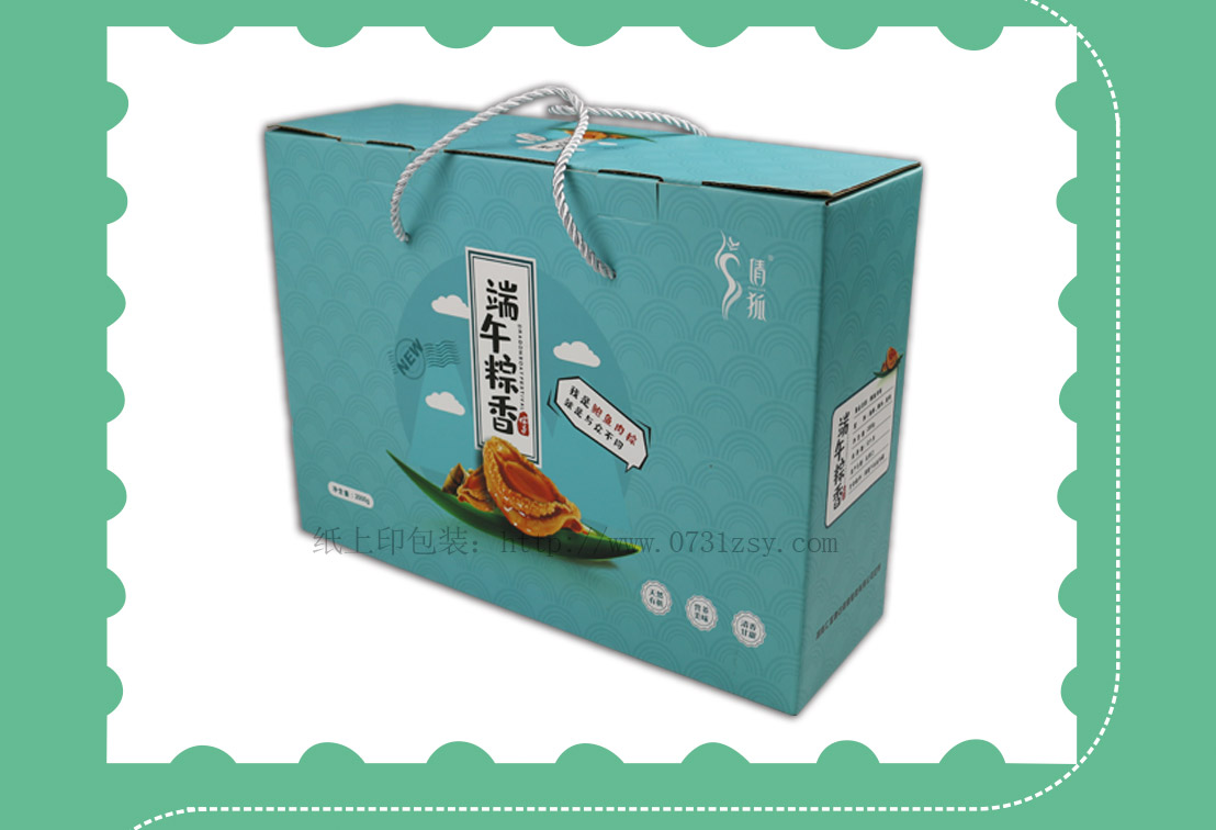 倩狐鲍鱼肉粽包装盒材质选用白板纸裱三层瓦楞制作,结实防潮,精选牢固三股绳,方便节日送礼提携,此款包装盒也广泛适用于特产包装盒,腊鱼腊肉包装盒,农产品包装盒,产品包装盒等,长沙粽子礼盒包装制作,免费设计,送货上门,热线:4008065886