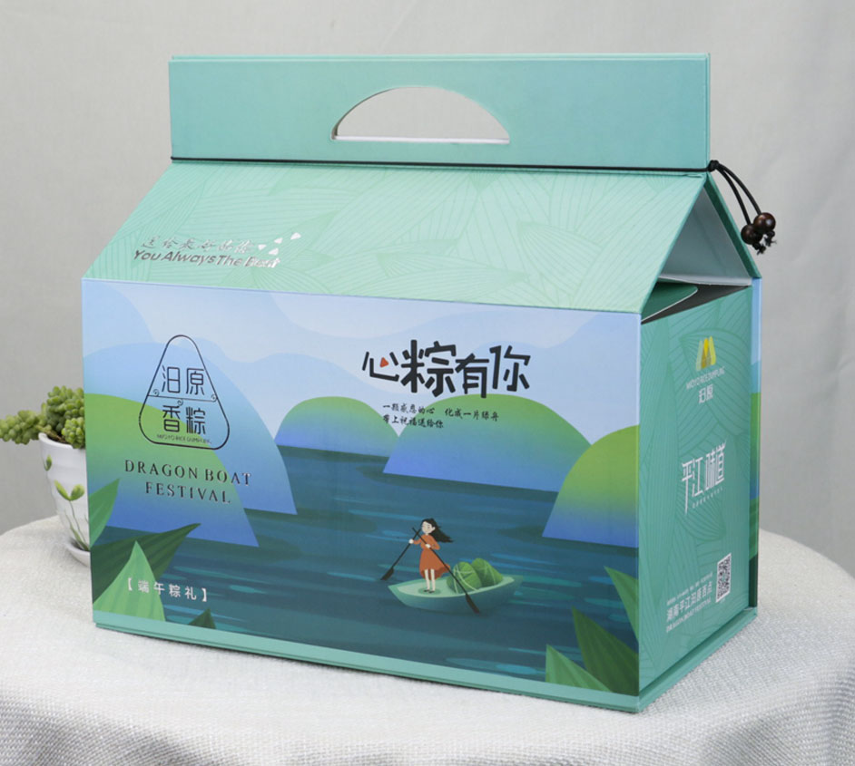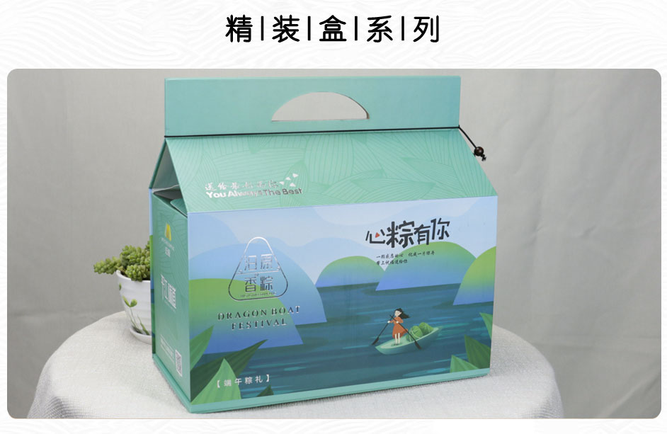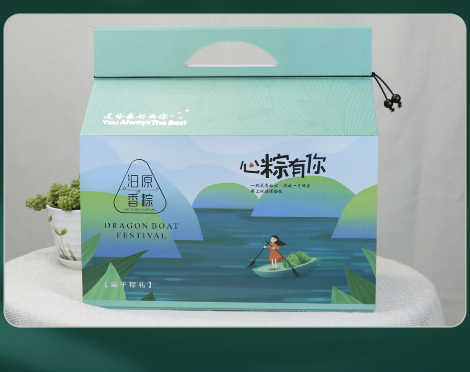 “汨原香粽”定做粽子包装盒是一款铜板纸裱灰板的精装盒,自带提手盒型,在LOGO的局部做了烫银的工艺,整体绿色基调更符合端午节的气息,材质广泛适用于食品包装盒、茶叶包装礼盒、产品包装盒等,长沙包装厂毅丰印刷包装提供免费打样,当天出样,热线:177-6366-7656